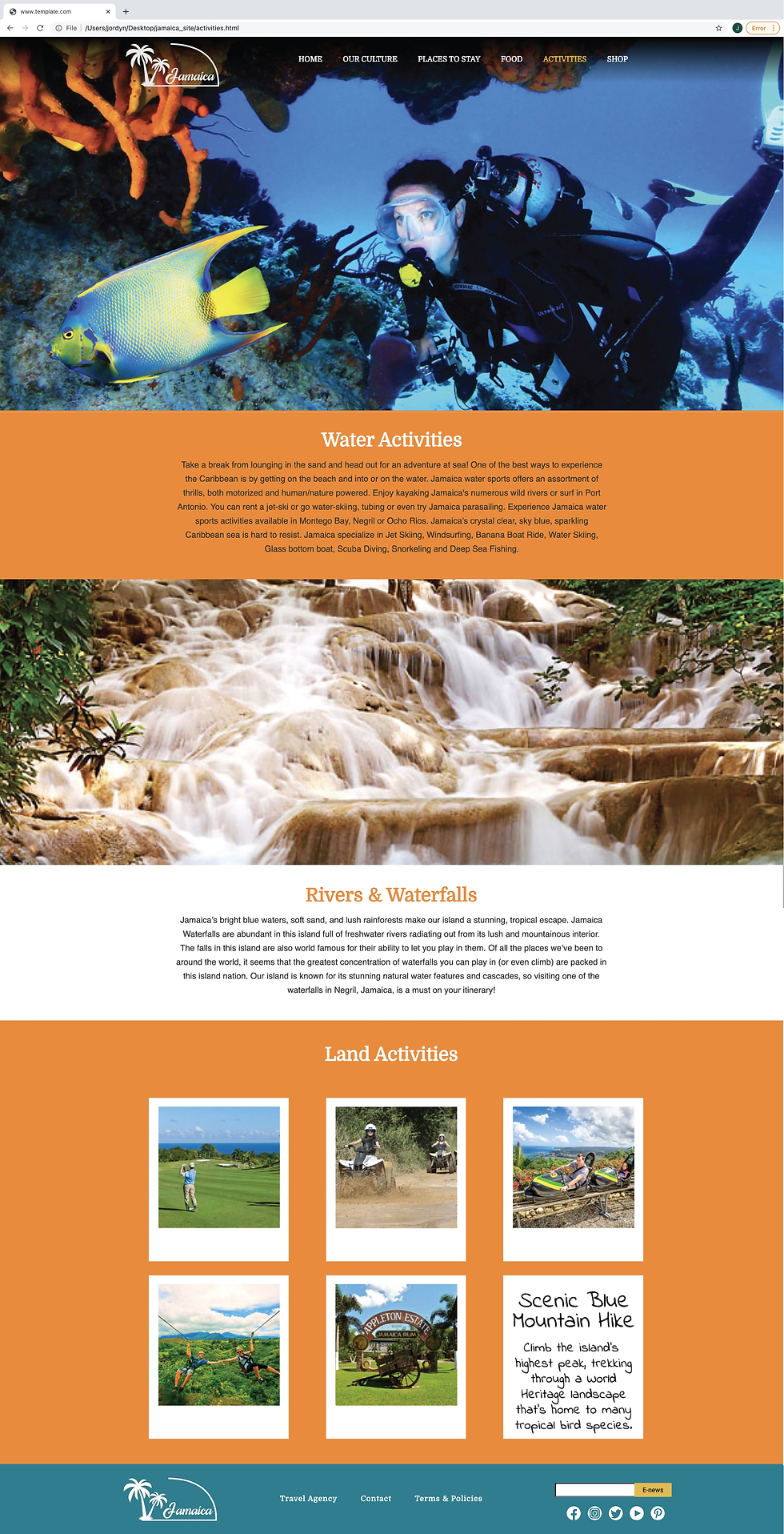 This project required me to create a travel site. This website includes information about what the people are like, what kind of activities they do, what kind of food they eat or what the weather is like.